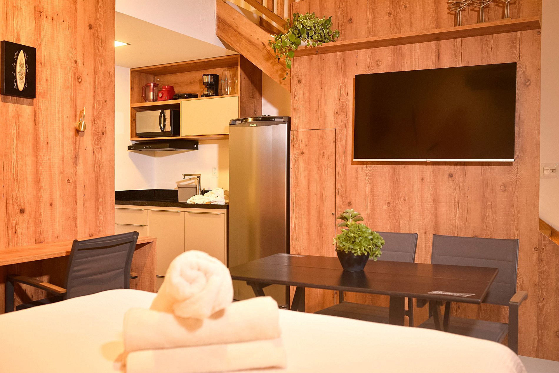 Estilo Itacaré is a newly launched venture, still with that fresh, new scent, featuring individually decorated apartments with personality. Style 12 is a unit with a beachy, rustic, and comfortable style, accommodating up to 4 people, with 2 in a double bed and 2 in a mezzanine with 2 single beds that can be joined to form a double bed. Highlights include top-quality utensils and harmonized spaces for a comfortably air-conditioned experience, as well as space for dining, home office work, excellent fiber optic internet connection, and a charming balcony.