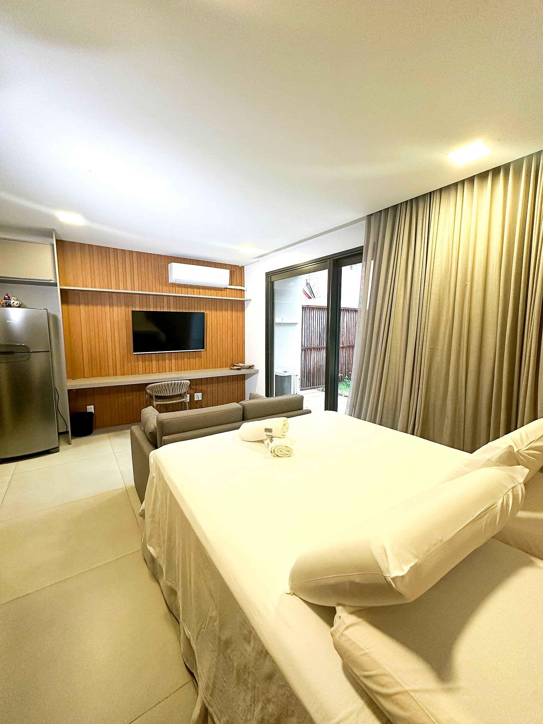 Estilo Itacaré is a newly launched venture, still with that fresh, new scent, featuring individually decorated apartments with personality. Style 03 is a unit with a beachy, rustic, and comfortable style, accommodating up to 4 people, with 2 in a double bed and 2 on a double sofa bed. Highlights include top-quality utensils and harmonized spaces for a comfortably air-conditioned experience, as well as space for dining, home office work, excellent fiber optic internet connection, and a charming balcony with a garden.